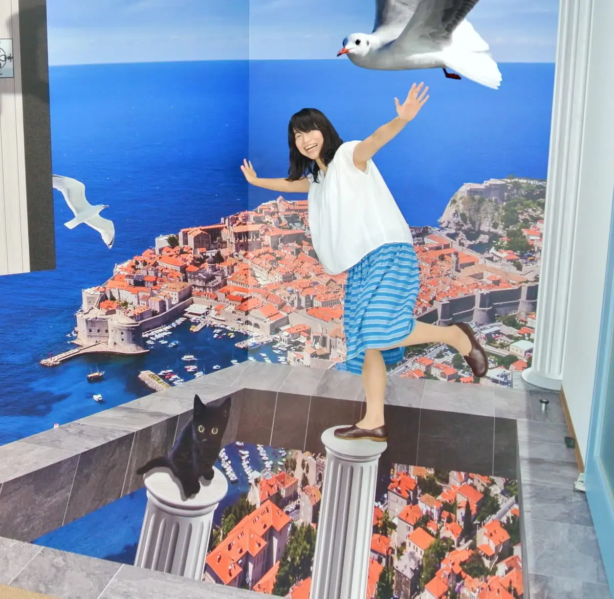 【フォト(写真・イラスト)】+【トリック(手品)】+【アート(芸術)】のネーミングが物語るように、平面に描いた写真やイラストが今にも飛び出しそうに見える錯覚アートです。